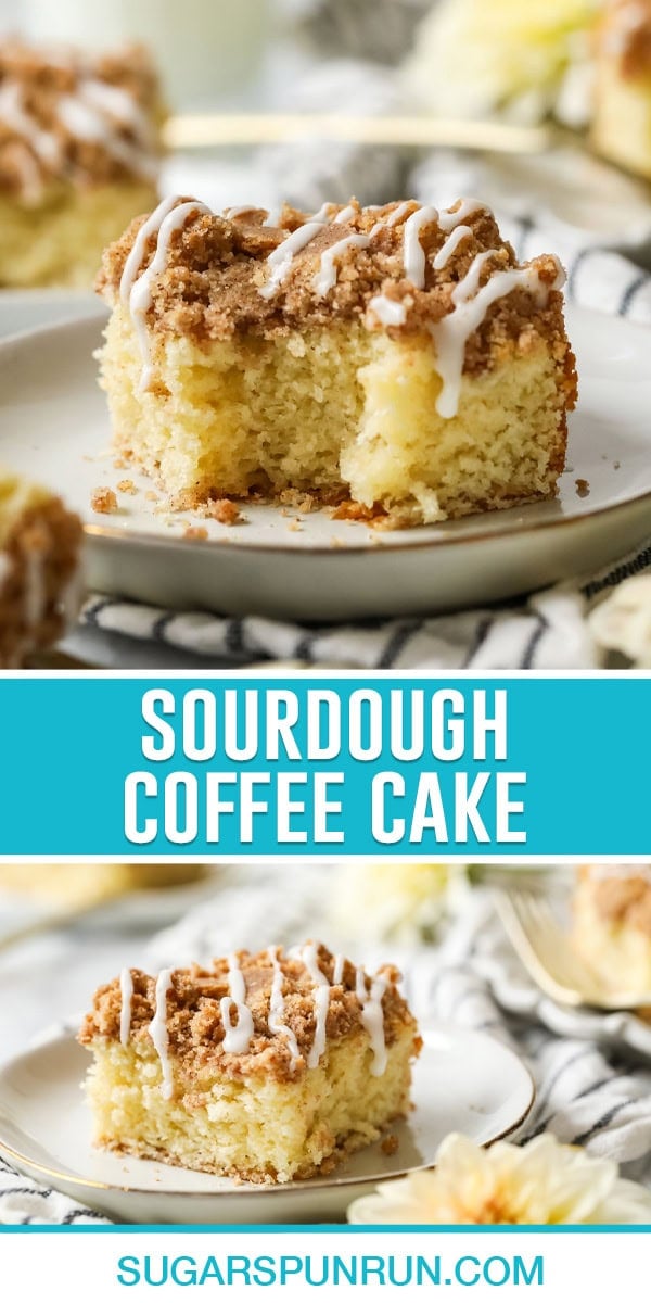 Is this sourdough coffee cake my new favorite coffee cake recipe? For now…until I come up with my next one (see also my pumpkin coffee cake, blueberry coffee cake, banana coffee cake–the list is always growing!). Today’s version has a lovely depth of flavor thanks to the sourdough, isn’t too sweet, and has an abundant, perfectly spiced crumb. I mean, just look at it! You need to try this one.